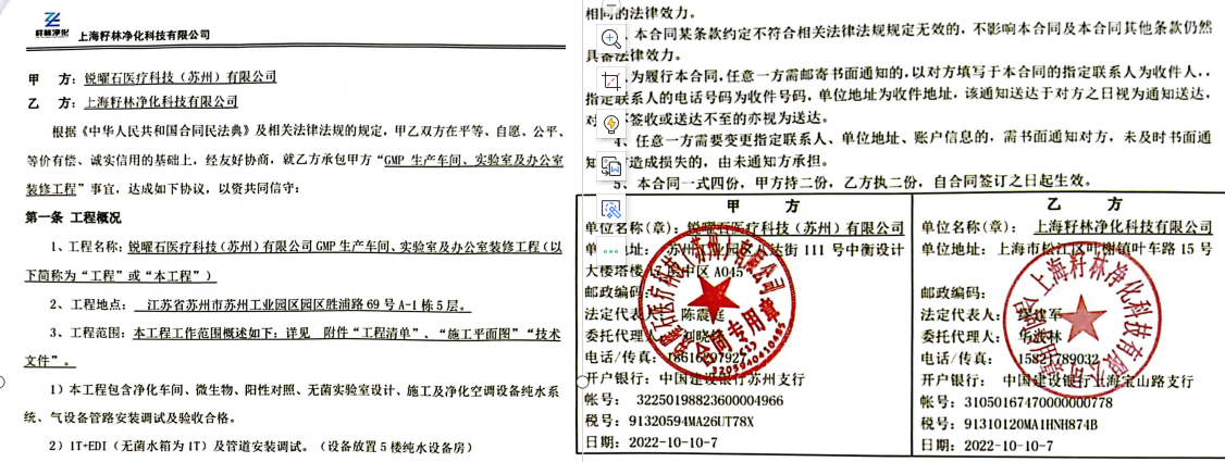 項目名稱:銳曜石醫(yī)療科技(蘇州)有限公司 GMP生產(chǎn)車間,實驗室及辦公室裝修工程
