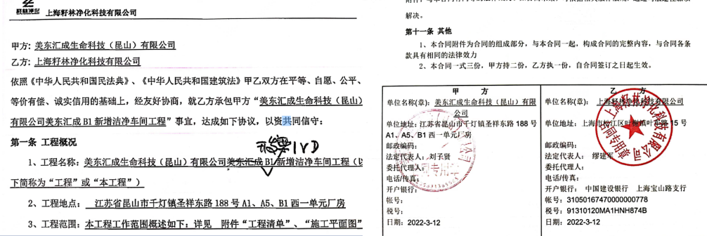 熱烈慶祝籽林與美東匯成生命科技(昆山)有限公司簽約工程順利交付使用!